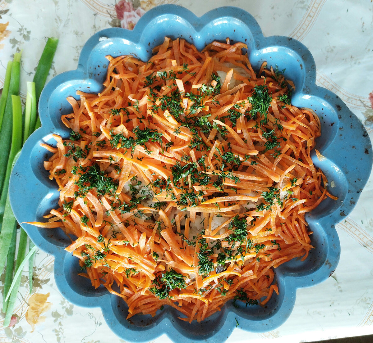 Рыба с рисом, морковью и луком - готовим в микроволновке быстро и очень вкусно. Нам потребуются: - рыба - любая (у меня стейки семги, но можно и речную) - лук - 1 шт - морковь - 1 шт - сметана - 2- 3 ст.л. - масло сливочное - 50-70 г - масло растительное - 1-2 ст.л. + для смазки формы - рис - 1 стакан - зелень для украшения - соль, перец, кориандр, тмин - по вкусу - рис - 1 стакан Готовим: Рыбку солим, перчим, сдабриваем любимыми специями, посыпаем мелко нарезанным луком и оставляем минут на 30 пропитаться-промариноваться. Тем временем до полуготовности отвариваем в подсоленой воде рис, нарезаемтонко морковь. Рис промываем. Форму для запекания - у меня силиконовая - смазываем растительным маслом, выкладываем в нее рис, на рис кладем тоненькин пластинки сливочного масла, сменану, выкладываем на верх рыбу, засыпаем морковью, приминаем ложкой. Морковь хорошо сбрызгиваем растительным маслом и вновь раскладываем по поверхности тоненькие пластины сливочного масла. Отправляем в микроволн