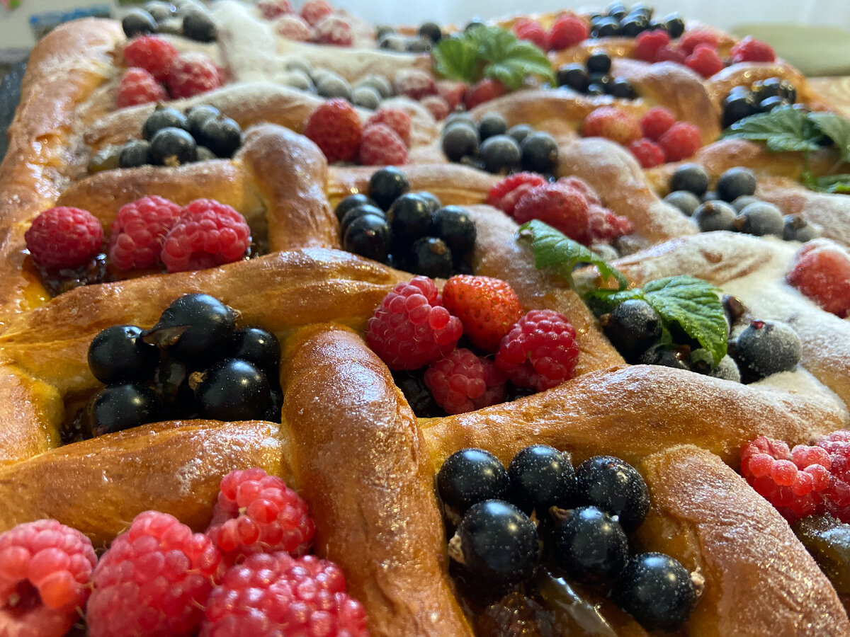 Всем привет! С Вами Алексей. Представляю на Ваш суд рецепт моей бабули из деревни вкуснейшего деревенского пирога. Пирог готовится в русской печи, хотя мы пекли и в духовке. Итак, нам понадобятся ингридиенты: Мука — 500 г (у нас местная с деревенских полей) Молоко — 200 мл (конечно домашнее) Яйцо куриное — 2 шт (конечно домашнее) Масло сливочное — 70 г (местное домашнее) Сахар — 2 ст. л. Дрожжи свежие — 20 г Для начинки - варенье на ваш вкус 300 г., может больше (у нас смородиновое) Для украшения - мята (у меня молодые листочки смородины), свежие ягоды, сахарная пудра. 1.Итак, в теплом молоке растворяем сахар и дрожжи. Оставляем на 10 минут в теплом месте до появления "шапочки". 2. Масло растопить, остудить. Муку просеять. Из муки, яиц, растопленного масла и закваски вымесить тесто. Накрыть полотенцем и оставить в теплом месте для подъема. У меня тесто поднималось 30 минут. Для рецепта у меня варенье из красной смородины. Вы можете использовать другое варенье или джем, какой ва