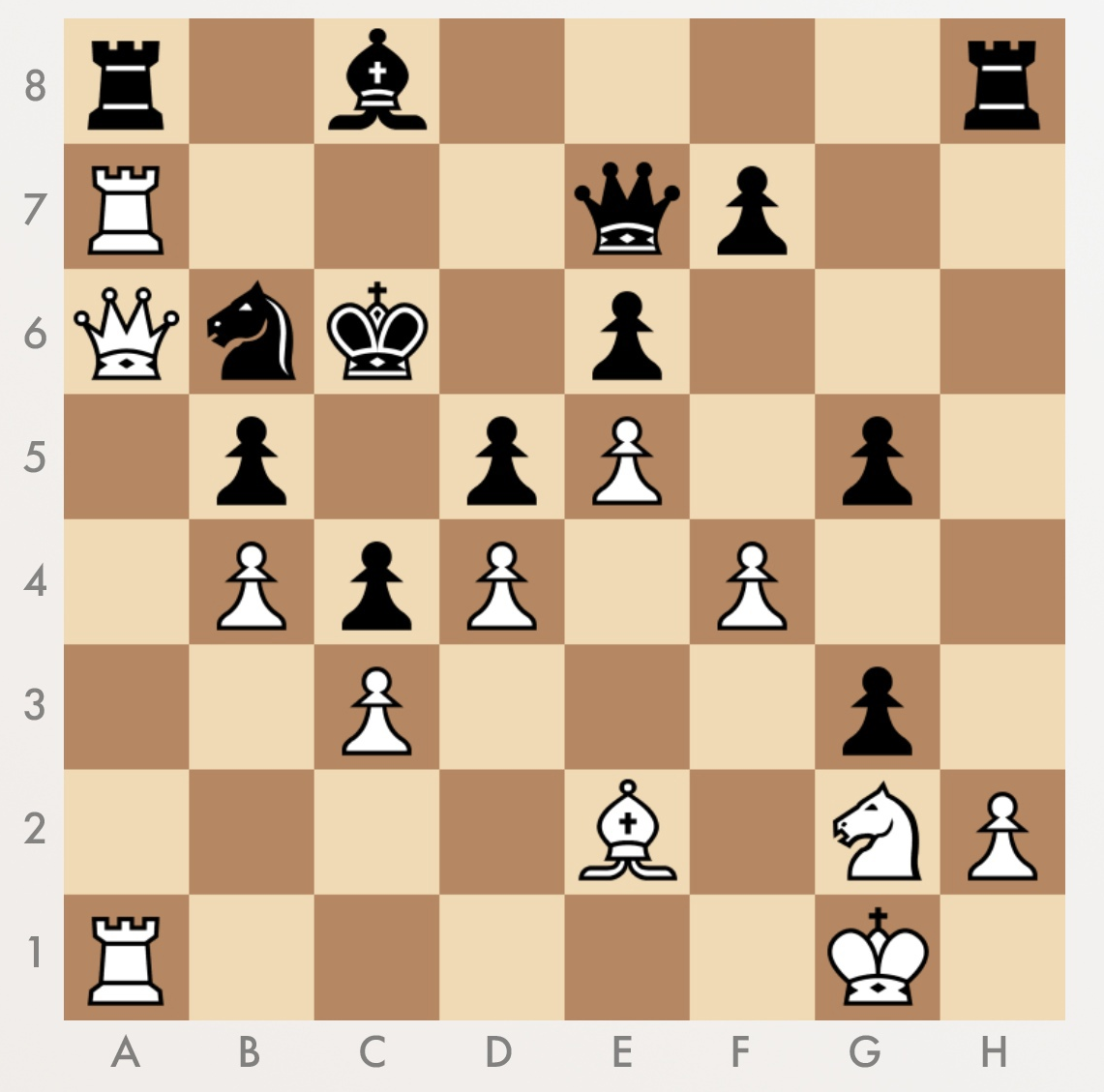 В данной партии, исход которой в первую очередь зависит от тактических решений игроков, белые неожиданно используют свой ресурс, что может повлиять на исход игры. Возможно, они нашли необычное применение своим фигурам или придумали новую комбинацию, которая перевернет ход игры. Как именно это повлияет на партию, мы узнаем только по ее завершении. Ход белых, мат в 3 хода Белые, хотя и уступают в материальном плане, находят способ выиграть партию благодаря прямой атаке на короля. Эта тактика, хоть и рискованна, может принести победу. Однако, важно не забывать о том, что иногда лучше укрепить свою позицию на доске, чем рисковать и совершать нападение. Ход белых, мат в 4 хода Эффектная матовая комбинация чёрных ставит точку в этой партии. Ход был продуман и мастерски выполнен. Но это только одна из многих партий, которые были сыграны на турнире. В этот день была особенно жаркая погода и многие игроки страдали от жары и усталости. Некоторые игроки даже не смогли продолжить и