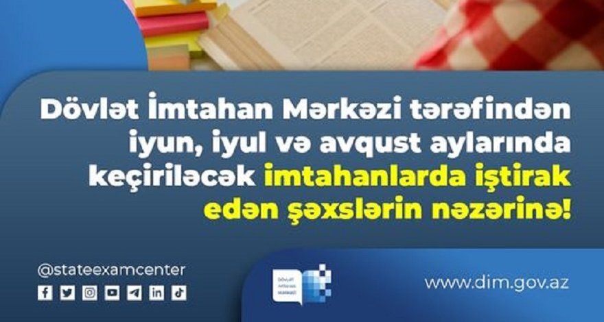 Время начала экзаменов, которые будут проводиться Государственным экзаменационным центром (ГЭЦ) 11 июня и в последующие даты, а также в июле и августе, в связи с характерными для этих месяцев жаркими погодными условиями перенесено на 10:00. Об этом сообщили в пресс-службе ГЭЦ. Участникам следует учитывать, что пропускной режим завершается за 15 минут до начала экзаменов - в 09:45, прибывшие позже не будут допущены в экзаменационный корпус. Во избежание скопления людей установлено разное время входа для абитуриентов, оно указывается в пропуске на экзамен. Поэтому необходимо явиться в экзаменационный корпус в то время, которое указано в пропуске на экзамен. Отмечено, что пропуск на экзамен публикуется на сайте ГЭЦ за 5-7 дней до экзамена. #абитуриент #экзамен #общество #новостиазербайджана #mediaaz