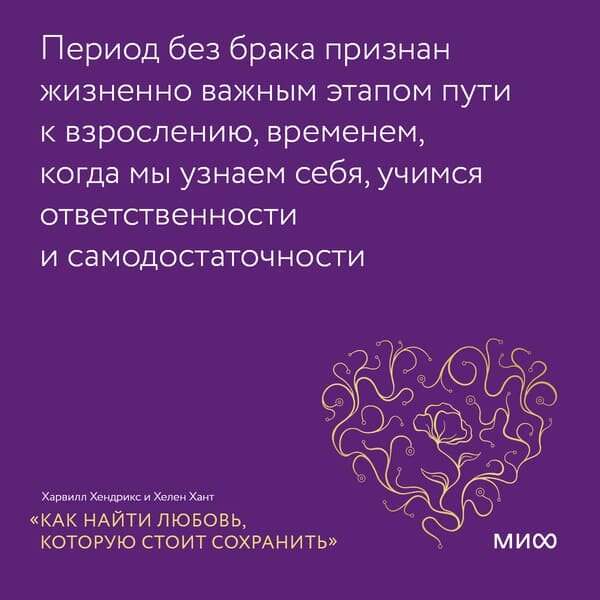 Куда уходит романтика? Нужно ли что-то делать, если вы не хотите серьезных отношений? Как быть, если не понимаешь партнера? И что поможет сделать любовь крепче? Делимся важными мыслями из книги «Как найти любовь, которую стоит сохранить». 1. Период без отношений — это исследование В обществе молодым людям преподносится модель раннего принятия решения и приверженности жизненному пути, а затем через тридцать лет мы получаем выгоревших на работе руководителей и домохозяек, лишившихся семьи. Авторы книги «Как найти любовь, которую стоит сохранить» считают, что большинству людей следует отложить вступление в брак, пока им не исполнится примерно 25. В этот период между детством (школой) и браком одинокие люди примеряют на себя мир и все, что он предлагает. Окружение не давит, убеждая вступить в брак, а скорее наоборот. Можно исследовать все сферы жизни. Это время, когда мы определяем свои истинные желания и противостоим внутренним силам и демонам, вносим корректировки в то, что препятствует