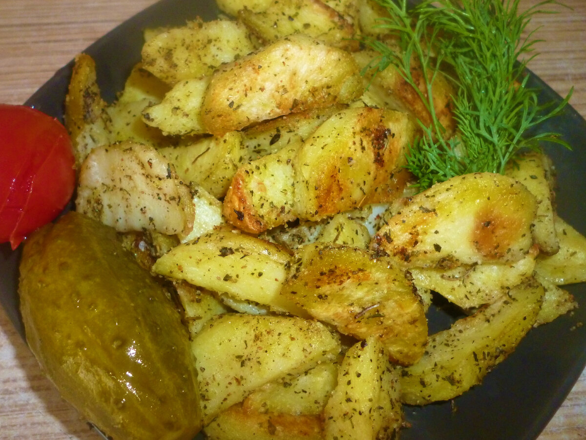 Предлагаю вашему вниманию очень вкусное блюдо из картошки. В кафе с фаст-фудом его обычно называют "Картофель по-деревенски". По вкусу картофель очень напоминает жареный, но фишка в том, что масла при приготовлении используется намного меньше, ничего не пригорает, и мешать ничего не нужно. К тому же, запеченный картофель гораздо полезнее жареного. Запекать можно как молодую картошку, так и картофель из прошлого урожая. Вместо "прованских" трав можно взять какие-то другие, на свой вкус.