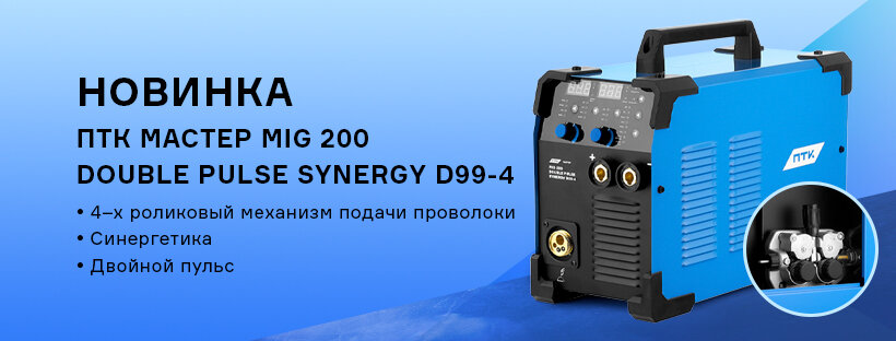 Новая модель аппарата ПТК МАСТЕР MIG 200 D99-4 так же обладает функцией синергетического управления и режимом сварки с двойным пульсом, где при использовании импульсного режима с легкостью и особым качеством свариваются нержавеющие стали, алюмини