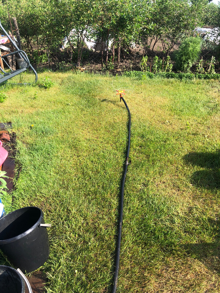 Дорогие друзья и гости канала! Рада всем кто заглянул ко мне на огонек! Лето, ах лето, как мы все ждали тебя! Может быть не таким горячим, как ты нас одариваешь, да и спутник твой, теплый, летний дождь, где-то потерялся. Поэтому день в саду начинается поливкой и заканчивается ею, но сухость почвы не проходит. Вот, они незаменимые помощники в жары ведра и шланги. Сегодня и дорожки поливала, газон желтеть начал. А, картошку в обязательном порядке. Для моих 125 гнезд, это совсем не трудно. Огуречник видно, сменила ему укрытие, сделала легкий тент и немного закрыла от полива, вода для огурцов холодная. Виднеется грядка с томатами, тоже с одной стороны их приоткрыла, под укрытием им пока комфортно, а то быстро под солнцем обгорят. Но скоро их нужно будет привязывать к опоре, да и пасынки уже начали расти предстоит большая работа с ними. Вдоль газона в начале посажены георгины, а дальше гладиолусы растут. После поливки, картофель окучила, а то потом уже перерастет для этого, а потом можно