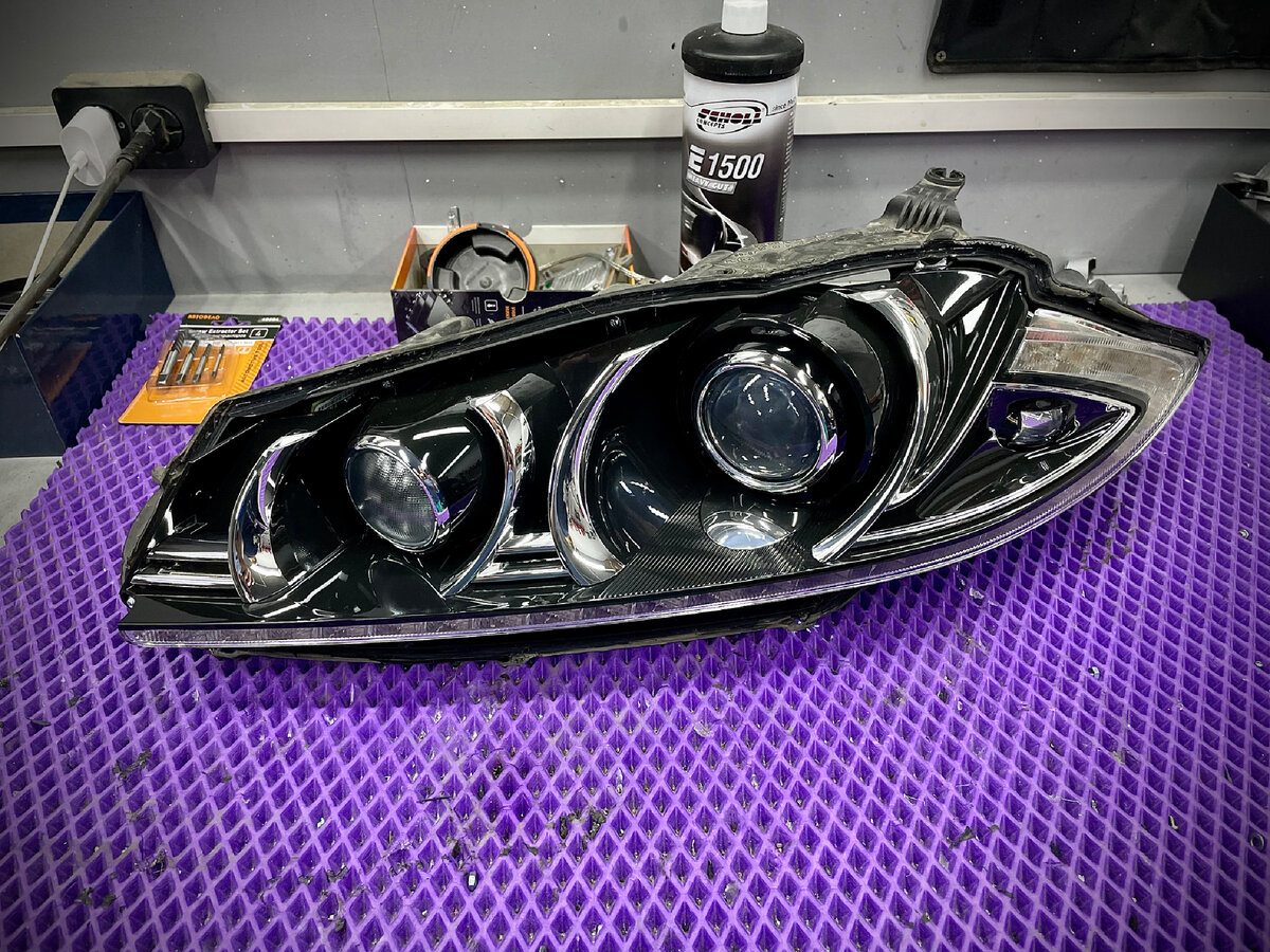На комплекс по улучшению света в нашей студии Jaguar XF. Штатно на автомобиле установлены адаптивные ксеноновые фары, которые со временем перестали давать должное качество освещения, да и сам ксенон уже морально устарел. Установим в фары современное Led освещение. Демонтируем фары с автомобиля и отправляем их в печь. В данном случае герметик у нас условно «неразборный» и требует определенных навыков, чтобы аккуратно отделить стекла от корпусов. Аккуратно снимаем декоративные маски, они крепятся к корпусу на саморезах и частично на защелках. Добираемся до адаптивного механизма с линзой и полностью его разбираем. На данном автомобиле у нас система Visteon AFS. Попутно дефектуем корпуса и стекла, одна из фар у нас имеет дефекты в следствии небольшого ДТП. Согласуем с владельцем новый корпус правой фары и комплект новых стекол. Приступаем к замене ксеноновых линз на Bi Led, выбор пал на топовые компоненты от компании MTF модули Laser Jet - ссылка на обзор. Отличная яркость, ширина и просто