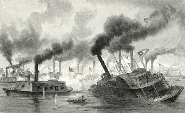 Вы скажете, что первое сражение при Мемфисе произошло в Древнем Египте. И, строго говоря, будете правы. Но мы имеем в виду сражение времен Гражданской войны в США. Причем не сухопутное, а речное. Бой произошел 6 июня 1862 года близ города Мемфис, что стоит не на Ниле, а на великой реке Миссисипи. Предыстория сражения такова. 29 мая 1862 года армия северян захватила Коринф (и опять не тот, который в Греции, а в штате Теннеси). Эта победа отрезала Мемфис от восточной части Конфедерации. Удерживать этот выдвинутый пункт на Миссисипи дальше казалось бессмысленным, и южане решили оставить город. 6 июня в Мемфисе оставался лишь арьергард южан да речная флотилия. Вообще говоря, она должна была отойти к Виксбергу, но ей не хватило угля, чтобы уйти 5-го числа, а 6-го утром поблизости от города показалась федеральная эскадра. Перед южанами встал выбор – сражаться или затопить корабли. Они выбрали сражение. Численность и организация сил Я не стану путать читателей названиями кораблей. Отмечу тол