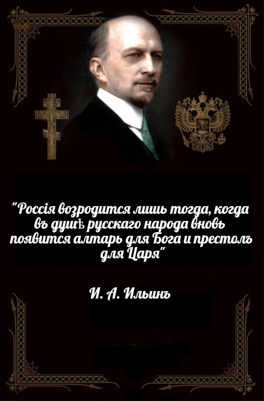 Россия держалась и строилась памятью о Боге и пребыванием в Его живом и благодатном дуновении. Вот почему, когда русский человек хочет образумить своего ближнего, он говорит ему: "Побойся Бога!", а, укоряя, произносит слова: "Бога в тебе нет!" Ибо имеющий Бога в себе носит в своей душе живую любовь и живую совесть: две благороднейшие основы всякого жизненного служения, священнического, гражданского и военного, судейского и царского. Это воззрение исконное, древнерусское; оно-то и нашло свое выражение в указе Петра Великого, начертанном на Зерцале: "Надлежит пред суд чинно поступать, понеже суд Божий есть, проклят всяк, творяй дело Божье с небрежением". Это воззрение выражал всегда и Суворов, выдвигая идею русского воина, сражающегося за дело Божье. На этом воззрении воспитывались целые поколения русских людей и тех, что сражались за Россию, и тех, что освобождали крестьян от крепостного права (на основах, не осуществленных нигде в мире, кроме России), и тех, что создавали русское земство, русский суд и русскую школу предреволюционного периода.