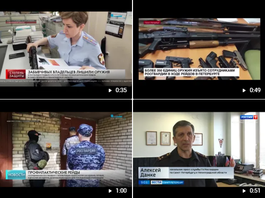 Сюжеты новостных программ телеканалов об итогах профилактических мероприятий по контролю за оборотом гражданского оружия