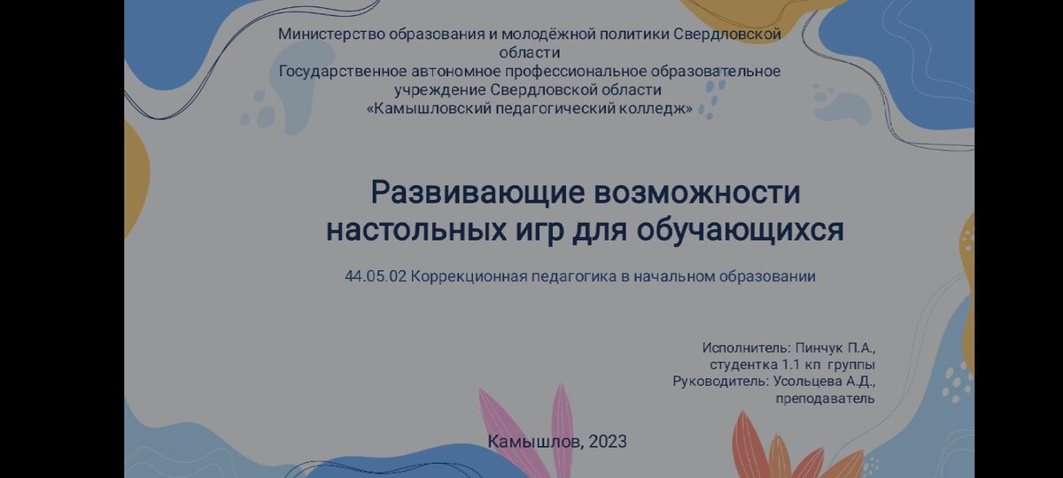 Как правильно оформить презентацию для индивидуального проекта? При оформлении презентации учитывайте общепринятые требования к оформлению презентаций: · цвет фона подобран уместно (холодные / светлые оттенки); · цвет текста подобран в контрасте с цветом фона; · верно подобран тип и размер шрифта (без засечек, размер – не менее 18 пунктов для основной информации); · в презентации использовано не белее 3 основных цветов; · соблюдается единый стиль в оформлении (отсутствуют разные шрифты, разные оформления слайдов и т.п.); · информация на слайде не дублирует содержание защитного слова; · текстовая информация, размещенная на слайде, имеет четкие и краткие формулировки, отсутствуют вводные слова; · текст представлен в удобной форме (например, схемы, таблицы, графики, диаграммы и т.п.); Презентация должна сопровождать выступление в течение 5 минут. Моя презентация: