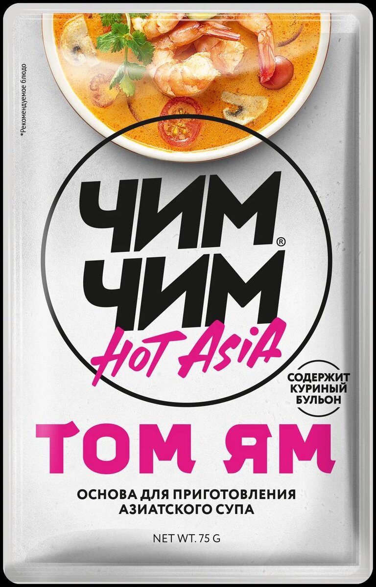 Том Ям – традиционное тайское блюдо, приготовленное на основе кокосового молока с добавлением разнообразных специй и пряностей. А с пастой Чим Чим это блюдо станет еще более насыщенным и ароматным. Вот рецепт приготовления: Вам понадобится: Основа для приготовления азиатского супа «Чим Чим» 1 пакетик Вода 400 мл Креветки очищенные 200 г Шампиньоны свежие 40 г Красный лук 1/4 шт. Кокосовое молоко 200 мл Томаты черри 100 г Растительное масло 1 ст. л. Лайм, зелень кинзы по вкусу Шаг 1. Нарежьте шампиньоны на тонкие ломтики и лук на тонкие перья. Томаты нарежьте пополам, а кинзу мелко порубите. Шаг 2. Возьмите сотейник или небольшую кастрюлю и разогрейте на среднем огне 2 столовые ложки оливкового масла. Обжарьте на медленном огне лук и шампиньоны в течение 1 минуты, интенсивно помешивая. Шаг 3. Добавьте в кастрюлю 2 чашки воды и доведите до кипения. Шаг 4. Добавьте креветки и шампиньоны в бульон и варите на среднем огне 3-5 минут до приготовления креветок. Шаг 5. Добавьте лук и кокос