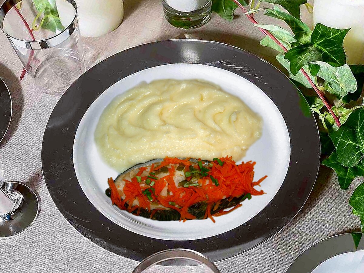 Продукты Стейки зубатки (заморож.) - 500г Морковь - 1 шт. Чеснок - 1 зубчик Соевый соус - 1/2 ч. л. Зелёный лук Петрушка Зелёные листья лука-порея Соль по вкусу Приготовление 1. Рыбу разморозить. Чеснок мелко покрошить, морковь натереть на крупной тёрке. Петрушку, лук мелко порезать. Листья лука-порея вымыть и положить на дно корзины-пароварки. Затем на листья выложить немного чеснока и моркови. 2. Положить рыбу. Посолить, полить соевым соусом, сверху посыпать зеленью, оставшимися морковкой и чесноком. 3. В чашу мультиварки налить воды до нижней отметки и вставить корзину. Выбрать программу «Варка на пару» - 15 минут (отсчёт времени с момента закипания). 4. После сигнала можно раскладывать по тарелкам. Ещё рецепты блюд с рыбой: