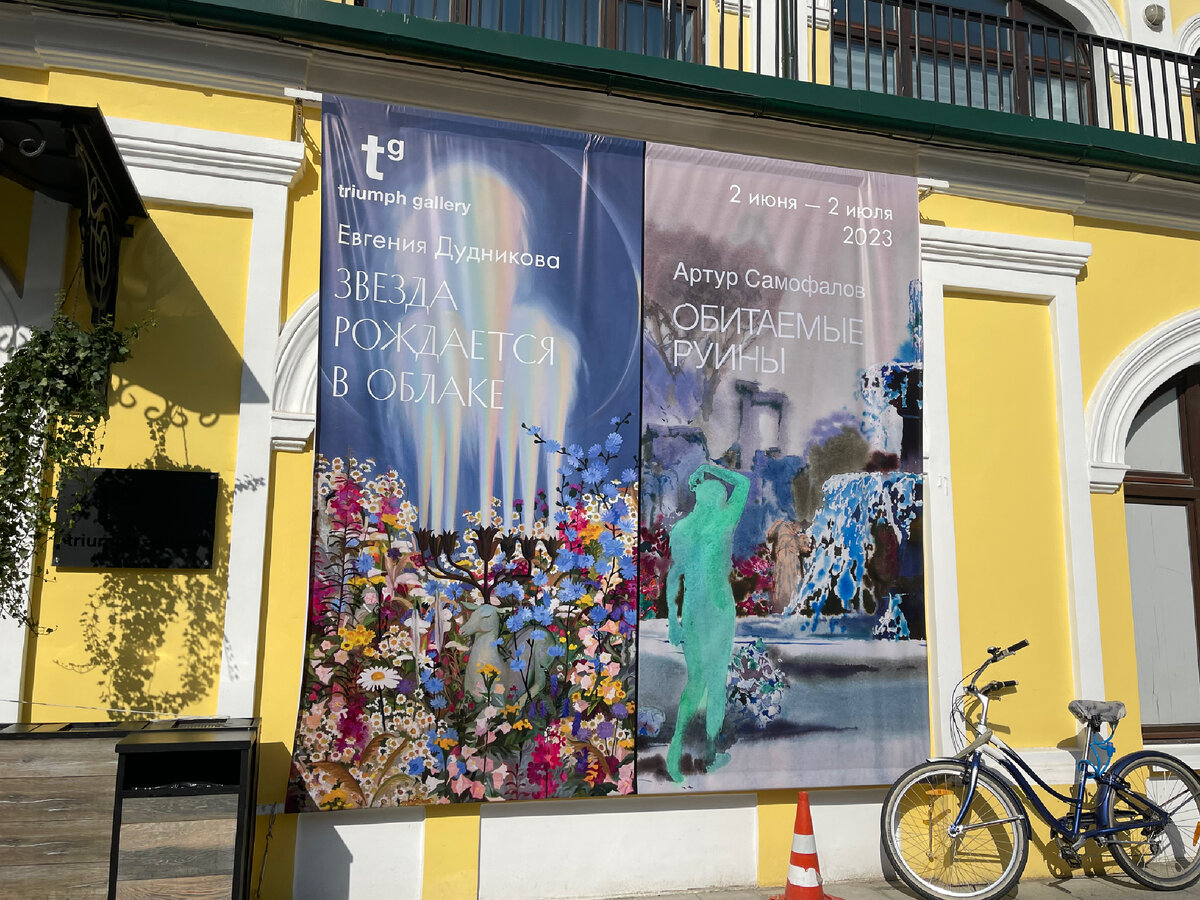 В галерее Триумф на Ильинке открыли две новых выставки и я наконец добралась да них. Первая - это выставка работ молодой художницы Евгении Дудниковой. Называется экспозиция «Звезда рождается в облаке» и главное здесь тема звезд, снов, фантазий. Работы Евгении очень девичьи : нежные, розово-голубые, с цветочками, лошадками, туманом. В них не стоит искать глубокого философского смысла, хотя автор старается представить какую-то концепцию, а искусствоведы изо всех сил анализируют работы, составляя рецензии из умных слов. Но на мой взгляд, работы рассказывают о счастливом мире девичьих фантазий. Все такое легкое, немного волшебное, чуть-чуть восторженное, милое и нежное. Это не нужно анализировать, а нужно в этот мир погружаться и наслаждаться. Кроме живописных полотен, на выставке еще представлен колодец, украшенный керамическими птицами и изразцами (можно долго его рассматривать, очень классная работа) и инсталляция с лодкой и бриллиантовым дождем. Так мило! В общем, мне выставка пон