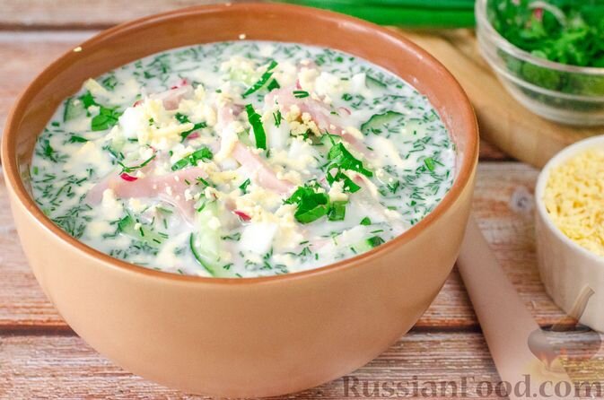 Окрошка на кефире и минералке. Суп со шпинатом и йогуртовой заправкой. Суп из молодого картофеля с луком-пореем. Рисовый суп со щавелем и кабачками. Суп с молодой капустой и шпинатом. Чечевичный суп со шпинатом и макаронами. Фасолевый суп-пюре с зелёным горошком. Суп со шпинатом, рисом и йогуртовой заправкой. Простейший суп с овощами и зеленью варится без мяса и без картофеля. В конце приготовления суп дополняется натуральным йогуртом с чесноком. Суп из молодого картофеля с луком-пореем и укропом. Очень быстрое в приготовлении первое блюдо. Суп слегка сладковатый - благодаря молодому картофелю, который предварительно обжаривается до золотистой корочки. Лук-порей, укроп и зелёный лук придают яркий аромат. Сметану в тарелки можно не добавлять, но она делает вкус супа нежнее и отлично дополняет его. Рисовый суп со щавелем, кабачками и помидорами. Очень вкусный и лёгкий суп без мяса. Благодаря помидорам и добавленному в конце приготовления щавелю суп получается с небольшой кислинкой. Кури