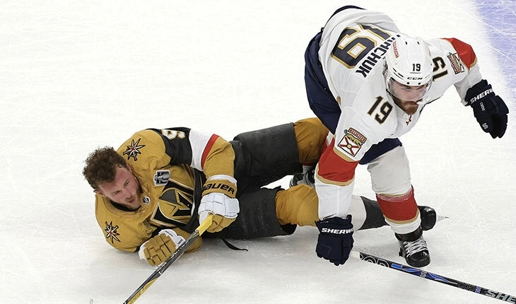 Айкел проводит плей-офф в режиме претендента на «Конн Смайта», выдавая умный, созидательный хоккей в максимально боевой и рабочей команде. И это не потому, что ему позволяют играть на чистых шайбах. Это потому, что он и сам прекрасный боец. Пример из второго матча с «Флоридой»: в конце второго периода, когда итог матча был очевиден, Джек с шайбой выходил из зоны, лишний раз опустил голову, а подняв, обнаружил, что его сейчас уничтожит Мэттью Ткачак. Ткачак щедро вложился в силовой – совершенно, надо признать, чистый – и за Джека в моменте стало страшно. А о чем еще думать, когда так падает человек, которому меняли диск в шейном отделе позвоночника? Айкел уехал со льда, что-то выкрикивая – и непонятно было, боль это или какое-то недовольство судьями. Потом был перерыв, и лидер «Вегаса» вернулся, а через пару минут после начала периода показал, что вернулся в полном порядке