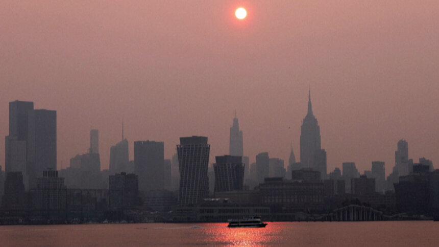 Видео: Нью-Йорк накрыл рекордный смог от лесных пожаров в Канаде