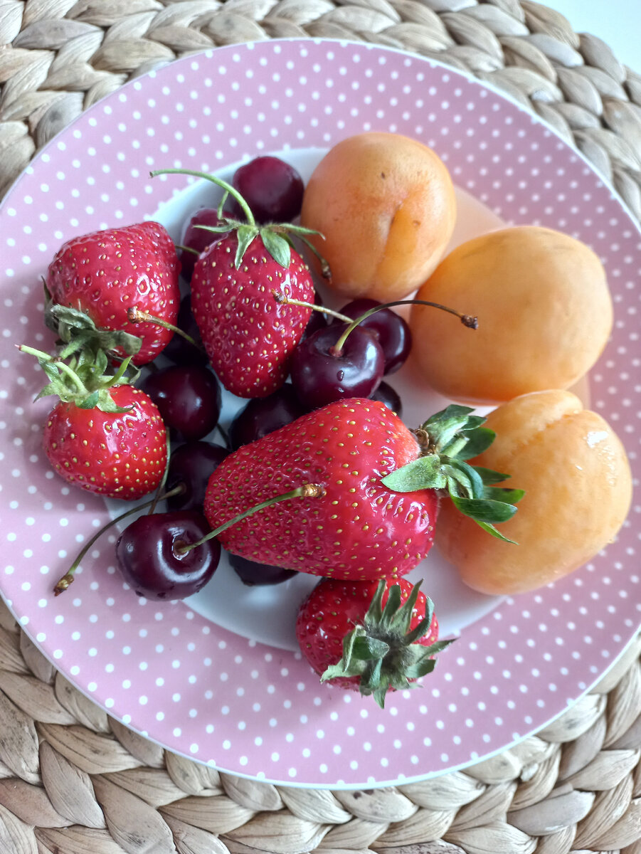 Всем всем привет ))) на календаре 8 июня , четверг . У нас по прежнему стоит африканская жара . С утра 27 градусов , днем 37-39 . Воздух сухой и раскаленный . Иногда начинает дуть горячий ветер . Конечно это уже очень утомило всех . Слишком жарко . А пышное цветение всего вокруг продолжается . Под окнами цветет сирень , сиреневая и белая . А еще зацвела большая и старая липа . Как же она прекрасно пахнет . Аромат просто волшебный . Вчера ближе к вечеру наконец то пошел долгожданный и очень нужный дождь . Такой теплый и освежающий , с солнцем сквозь тучи . Я открыла окно и с удовольствием наблюдала . Шум воды , свежий аромат дождя , сирени и липы , как же это было прекрасно . Правда дождь закончился так же быстро и неожиданно , как и собрался , и опять выглянуло солнце , а жара продолжилась . Проснулась и вчера , и сегодня опять рано . Спать долго летом не хочется . Побуду временно жаворонком . Побыть совой успею зимой . Летом нужно пользоваться , оно у нас и так короткое . Есть с утра что то не очень хотелось , видимо жара все таки дает о себе знать , но разве что тарелку холодных ягод и кофе с печеньем )