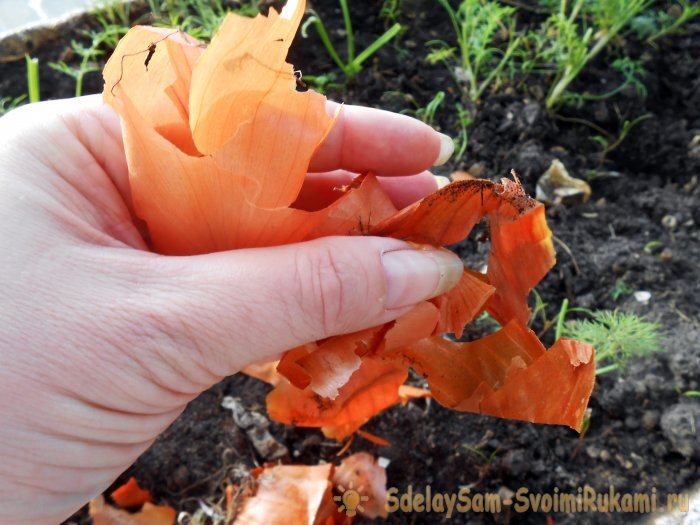 Водные вытяжки из луковой шелухи в саду и на огороде используются не первое десятилетие. В особом почете это натуральное и практически бесплатное средство у поклонников органического земледелия, принципиально не использующих синтетические препараты и пестициды на своих участках. Узнав о полезных свойствах луковой шелухи, я начала целенаправленно собирать ценное сырье круглый год, благо покровные очистки практически не нужно сушить. Спешу поделиться с вами своими наработками по применению натурального и совершенно бесплатного средства для улучшения здоровья всех дачных насаждений. В чем заключается польза луковой шелухи для культурных растений? Обработка в саду и на огороде овощных, плодово-ягодных и декоративных культур, в том числе деревьев и кустарников, отваром и настоем, приготовленным на основе покровных чешуек репчатого лука, помогает в борьбе с некоторыми вредителями и болезнями культурных растений. Биологический акарицид угнетает жизнедеятельность взрослых особей и личинок тлей