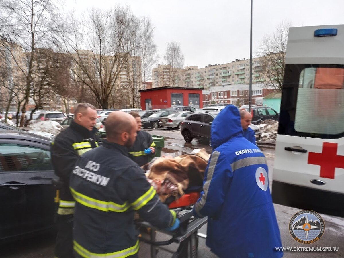 Помощь 03: Женщина с травмой колена. Бригада скорой ногу уже зашинировала, нам осталось только донести до машины. Зайдя в парадную увидели много строительного мусора. В холле три лифта, но работает только один - самый маленький. С поддержкой помогли выйти женщине из квартиры, дальше на стуле донесли до лифта и также на стуле в лифте. Бригада скорой очень странная. Сказали, что у них нет медицинского кресла в машине. Но когда каталку закатывали внутрь, мы увидели, что оно висит себе на задней двери, как обычно. Водитель на наш вопрос сказал, что не знает что это такое. Каталку тоже не дали подкатить к лифту, хотя там есть пандус, сказав что у нее колёса отвалятся, а чинить некому...