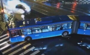 Молодой мужчина был признан виновным в нарушении ПДД: а) в состоянии опьянения, б) в результате которого погибли два человека. За это 6-й частью 264-й статьи УК России предусматривается от восьми до пятнадцати лет колонии. Москвич получил минимальный срок. «Пьяная» авария произошла в конце сентября на юге Москвы, в Нагатинском Затоне. Будучи нетрезвым, молодой мужчина сел за руль записанной на его супругу немецкую иномарку, после чего сбил двух горожанок, которые выходили из салона трамвая на судостроительной улице. «Скорая помощь» доставила пострадавших в медучреждение, однако их спасти, к сожаления, врачи не смогли, говорят в столичной прокуратуре. После происшествия с пешеходами водитель «Мерседеса» пытался скрыться. Только на скорости въехал в автобус-гармошку. Это следует из записи видеокамеры наружного наблюдения, опубликованной прокурорами в Интернете (см. заглавное фото). Пьяный лихач осужден на восемь лет лишения свободы. Отбывать наказание будет в колонии общего режима. Кроме