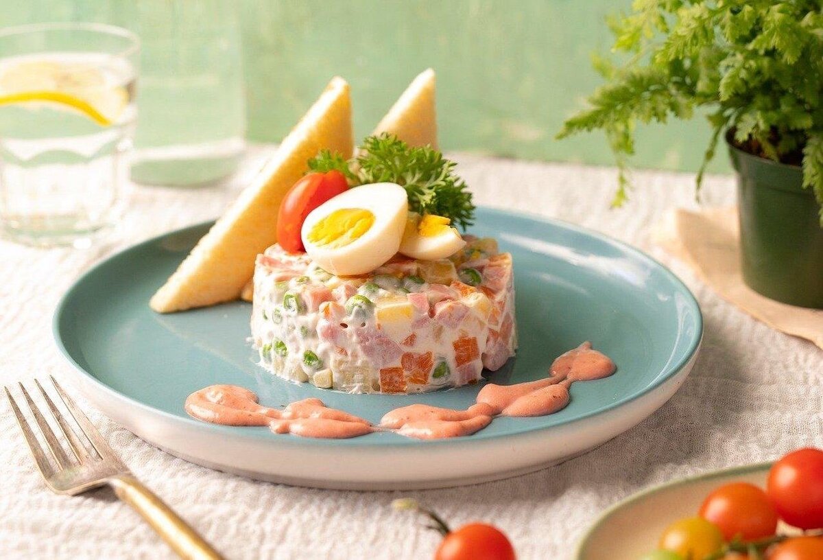 Салат "Оливье" - одно из самых традиционных блюд на новогоднем и ином праздничном столе у россиян и жителей СНГ. Несмотря на то, что автором его является француз Люсьен Оливье, популярным блюдом салат стал именно в России. В 19-м веке Люсьен руководил московским рестораном "Эрмитаж". Там и появился знаменитый салат, оригинальный рецепт которого сильно отличался от того, что мы знаем о нём сейчас. В меню ресторанов различных стран мира "Оливье" носит название "Русский салат". Традиционный современный салат "Оливье" является достаточно калорийным, жирным и сытным блюдом. Любители вести здоровый образ жизни скептически к нему относятся и предпочитают избегать. А зря, ведь рецепт салата можно немного изменить, тем самым превратив его в более полезный и лёгкий. Ниже мы предлагаем два варианта. 1. Первый рецепт Более традиционный и калорийный. В нём отсутствуют вредные компоненты, такие как колбаса и майонез. Для него понадобятся: Куриное мясо заранее отварить и остудить. Отдельно сварить ка