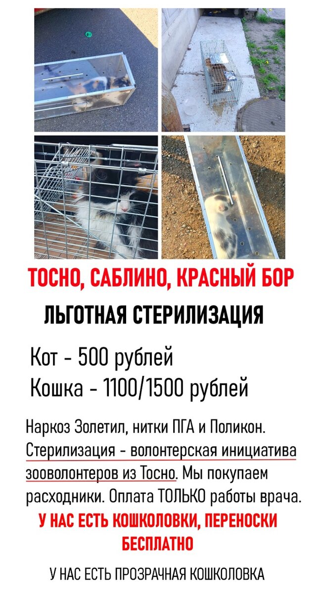Могу помочь кошколовкой и переносками, оплатой. ВСЕ ДАЁМ БЕСПЛАТНО