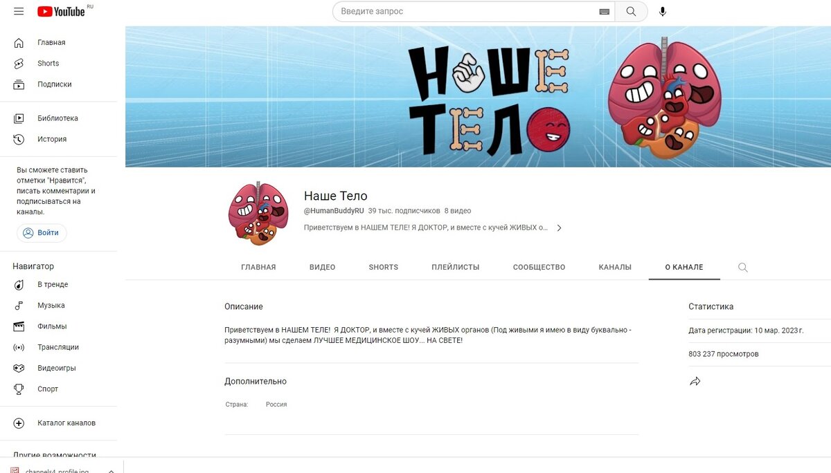 Некоммерческие мультипликационные проекты на Ютубе становятся всё более популярными. Так, создатели "Шаранутого космоса" и "Мистера сферического" теперь ведут ещё один канал - "Наше тело". Пор сути это похоже на "Шаранутый космос", где персонажи взаимодействуют в рамках одной системы (в данном случае это органы в человеке). Но поскольку органы находятся ближе друг к другу, чем планеты, то в разговоре обычно участвуют все. Каждый орган - по-своему харизматичный и запоминающийся. Пока вышло пять роликов - "Если бы у органов были чувства", "Вкратце о человеческом теле", "Как выжить, падая без парашюта", "Побочные эффекты жизни в космосе" и "Что происходит, когда нашему телу холодно?".