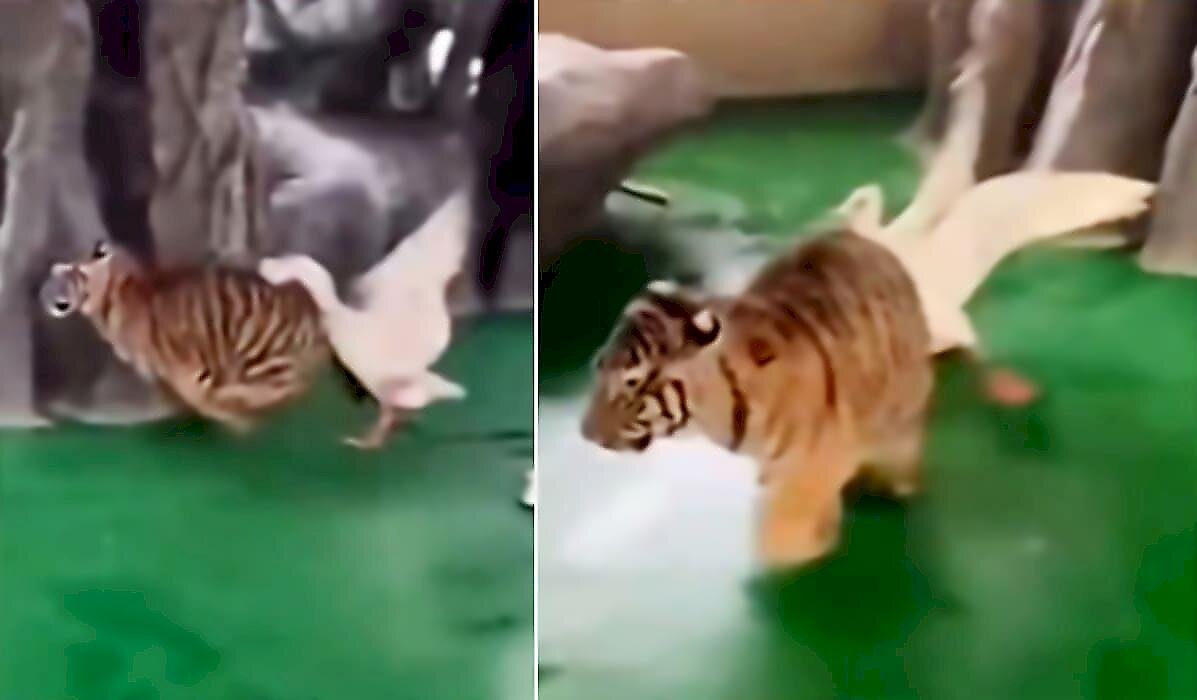 Видеоролик, снятый в парке дикой природы Northeast Village (провинция Хэнань, КНР) с моментом неудачной охоты юного хищника, бьёт рекорды просмотров в интернете.
