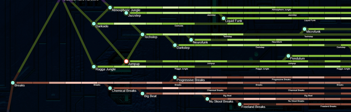 Но слушатели полюбили Jumpup не за простой двухступенчатый ритм, а за запоминающиеся басовые линии. Это были не мрачные и пугающие партии из Darkstep, это были скорее легкие, фанковые и запоминающиеся мелодии, как мелодии Пола Маккартни, выбрасываемые в кульминационный момент дропов и брейкдаунов.