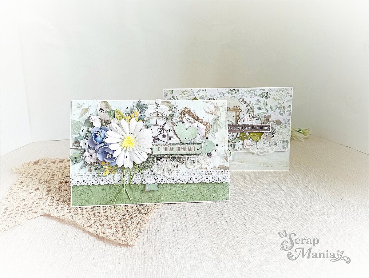 Добрый день, творческие друзья! С вами Хедоян Ирина. Сегодня я хочу вдохновить вас свадебными конвертиками сделанными из прекрасной коллекции "Улочки счастья" от ТМ ScrapMania. Коллекция настолько многогранна, что позволяет разгуляться фантазии и работы выполняется на одном дыхании. Оба конверта размером 12*18см, закрываются при помощью магнитиков. Рассмотрим поближе каждый из них. Первый конверт выполнен из листа"Гербарий". Центральным элементом я выбрала часики, вокруг которых собрала композицию из тканевых цветов, вырубки, вырезанных элементов из листов, фишек, ткружева и надписей, взятых из информационной полсы с листов данной коллекции. Из бумажного флажка, вырезанного из бонусной страницы, я сделала иммитированную тесемочку. С ее помощью удобно открыть конвертик, а установленный магнит прикрыла бабочкой. Конструкция второго конверта идентична первой, выполнен он из листа "В объятиях листвы". Здесь центральным элментом идет вырезанный круг с цветами, взятый из бонусного листа.