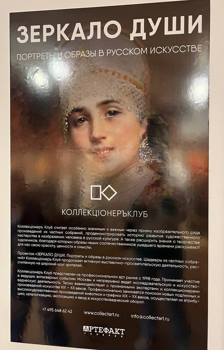 Посетили галерею Артефакт, выставку «Зеркало души». Выставка открыта до 9 июля 2023 года. Регулярно вечерами собираются экскурсии, билет стоит 800 руб. Выставка состоит только из картин частных коллекций. Из названия понятно, что главная идея - показать «зеркало души» - глаза, поэтому на всех картинах представлены портреты. В основном, это работы русских художников 20 века: Серебрякова, Кончаловский, Репин, Фешин и другие. Картины такие массивные, в огромных золоченых рамах. Представляю, как они висят в домах частных коллекционеров. Скорее это особняки с высокими потолками. Интересно, что портреты реальных людей в России начали писать только в конце XVII века. До этого существовала иконопись, где изображали лики святых, давно умерших. Потом появилась «парсуна» (искажение слова «персона») - это изображения реальных людей, но выполненные иконописными мастерами. Такие «персоны» выглядело не очень реалистично. И только в XIX веке появляются портреты в стиле реализма. Яркий пример - художни