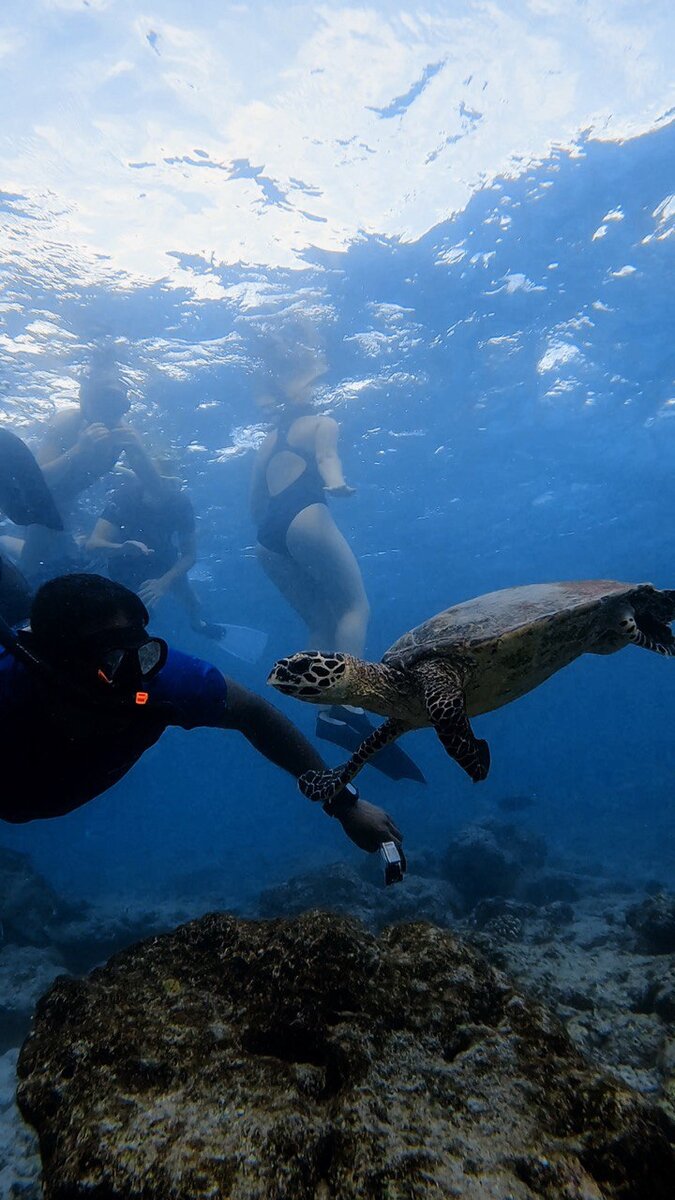 В один из дней мы гуляли у пляжа и разговорились с местным, который собирался через несколько часов пойти "снорклить" в море — смотреть на рыб и больших морских черепах. Он предложил нам присоединиться, и мы, недолго думая, вооружились масками и трубками.