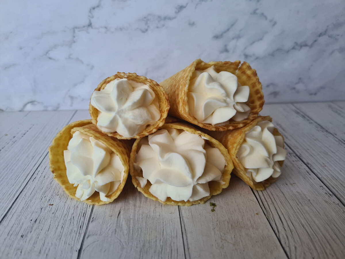 Продолжаю этот день рецептами мороженого. Очередной рецепт выглядит очень просто. Всего 2 ингредиента и мороженное будет готово. Нам понадобится: По желанию, можно добавить ванилин. А также по вашему усмотрению подобрать способ подачи. Давайте сначала приготовим само мороженое. Нам нужно взять очень холодные сливки. Они должны пролежать в холодильнике не менее 8 часов. Наливаем их в какую-то миску. Объем миски побольше, так как при взбивании сливки будут брызгаться. Еще один важный пункт, миска должна быть сухая, без единой капли воды. Если сомневаетесь в своих силах миску тоже уберите в холодильник, тогда точно всё получится)) К ним же в миску отправляем сахарную пудру и по желанию ванилин, я добавила так как мне нравится аромат ванили. Взбиваем. Сначала на маленькой скорости, и постепенно мы увеличиваем скорость миксера до максимальной. На взбивание в среднем уходит минуты 4. Когда след от миксера не растекается, значит сливки взбиты как нам надо. В целом мороженое осталось только