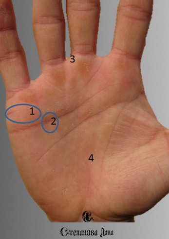 Рада всем заходящим на мои просторы - интересного прочтения! Сегодня хочется уделить внимания анализу руки, которая входит в стихию животных. На примере мы видим руку средних размеров... Могу отметить, что на ощупь рука тверда, ладонь носит суженный характер. По ногтевой фаланге, которая слегка нависает над ногтем, могу отметить лопатообразную форму. Мы видим, что ладонь пропорциональна размеру пальцев, которые имеют узловатую форму. Все вышеописанное указывает на натуру, наделенную природной мудростью с довольно сильно развитой интуицией. Но здесь есть свои минусы, такой человек может быть лжив и воровит. В обоих случаях стоит отметить незаурядную личность, наделенную неординарными способностями. 1 - На руке наблюдается довольно четкая и длинная линия брака, что указывает на вполне длительные отношения. Взгляните на фото- общее количество линий брака в этом месте, указывает на такое же количество браков, чем длиннее линия, тем крепче и дольше будут отношения. Нужно отметить и не забыв