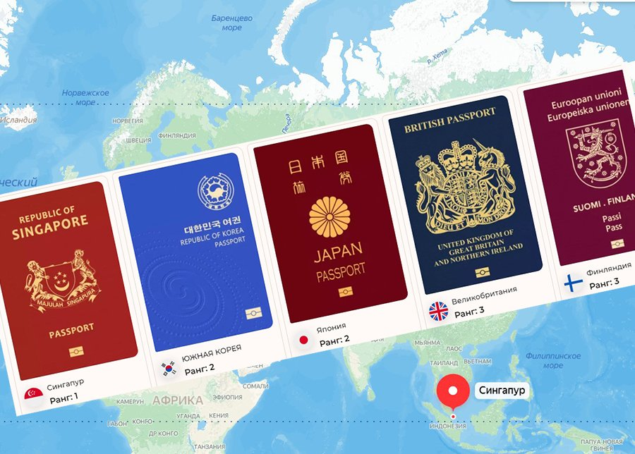 Специалисты онлайн-платформы Visaindex.com составили рейтинг паспортов на данных Guide, которые считаются самыми точными и актуальными для ранжирования безвизовых направлений для граждан определенных стран. Первое место занял Сингапур, второе разделили Южная Корея и Япония.