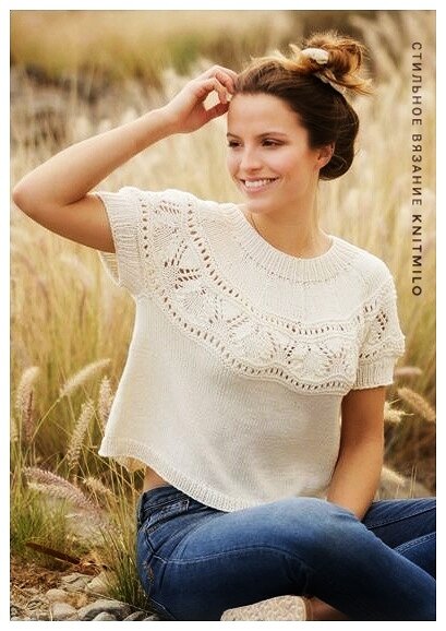 Плотность вязания топа: 20 петель и 26 рядов лицевой гладью соответствует 10 на 10 см.