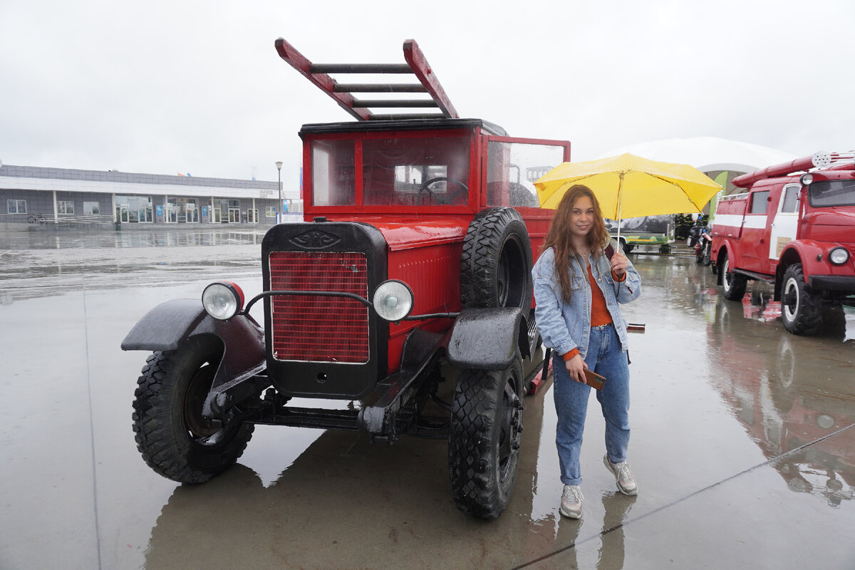 Как раз, пока я заканчивала работу над моделью автолестницы на шасси ГаЗ-52, я посетила выставку Комплексная Безопасность, которая проходила на прошлой неделе в подмосковном парке Патриот. Хоть погода мне не благословила, но на интересные экспонаты я успела посмотреть. Например, особое внимание на себя обратила минивыставка раритетной пожарной автотехники, и сейчас я о ней подробней расскажу. Самым интересным экспонатом был конечно пожарный ЗиС-5. Меня особенно впечатлила деревянная отделка кабины, почему-то на военном варианте этой машины это обстоятельство не столь ярко бросается в глаза. Наверное, находится внутри такой кабины сродни нахождению в маленьком деревянном сарайчике. Также любопытно выглядели в пожарном исполнении легковушки - Ваз-2101, или же как ее часто называют копейка и Газ-21 Волга. На таких автомобилях в 50-70 годы прошлого века выезжали оперативные дежурные пожарных подразделений страны на пожары. А этот Рафик, наверняка многим знаком по модели, которая выходила