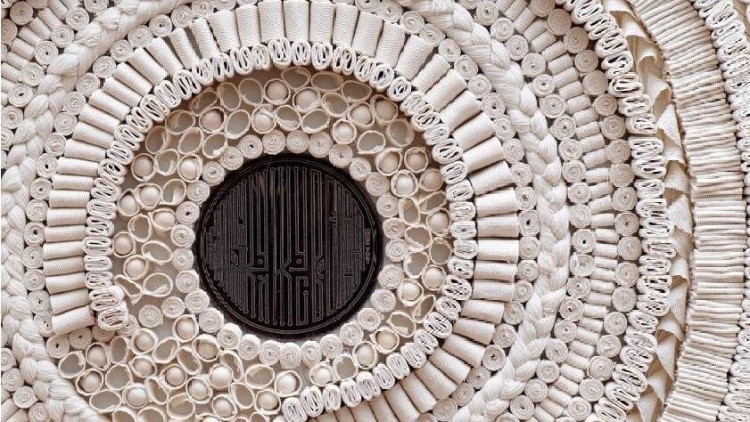 На выставке можно увидеть керамический и стеклянный текстиль, вышивку по строительным сеткам, скульптуры-гобелены, арт-объекты из лыка, дерева, луговых трав и веток. Все это — другой текстиль, другой взгляд на развитие народных промыслов и другое отношение к природным материалам, ценность которых нам еще предстоит осознать.