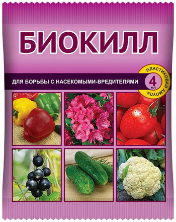 «Биокилл» эффективен против более 20 грызущих и сосущих вредителей садовых и огородных культур. Более того, его можно использовать для защиты декоративных растений, в том числе комнатных.
