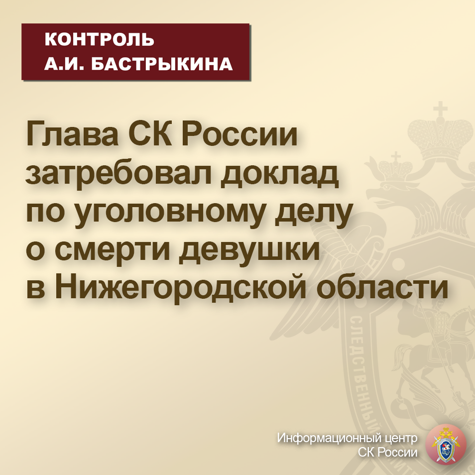 Глава СК России затребовал доклад по уголовному делу о смерти девушки в Нижегородской области