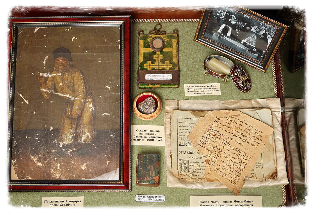Как я писала уже мы посетили музей Параскевы Дивеевской, она же Паша Саровская. Музей открыт ежедневно, но очень ограниченное время всего с 12 до 15 часов. Посещение музея бесплатное. Сам музей небольшой всего 3 зала (точнее небольшие комнатки) и комнатка для персонала. Расположен около монастырских ворот. Милый, голубой домик. Именно в этом домике и проживала блаженная Параскева Саровская. В музее хранятся подлинные вещи Серафима, Параскевы (Паши), дивеевских сестёр, так же много картин, написанных сестрами монастыря, множество икон и литографий, старинных книг и рукописных тетрадей, личные вещи батюшки Серафима и блаженной Параскевы, учредительниц монастыря и сестёр. К сожалению в музее не приветствуется фотографировать, поэтому фоток очень мало. В главной комнате мы увидели уголок с подлинными вещами преподобного Серафима Саровского. Особый интерес вызвала у меня маленькая свеча Серафима Саровского. Доподлинно известно, что перед смертью он передал свою свечку дивеевским се