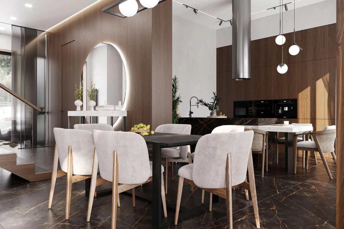 Отделка кухни требует профессионального подхода, особенно, если речь идет об общественном пространстве, совмещенном с гостиной. Ведь именно там мы проводим больше всего времени, принимаем гостей и общаясь с близкими. А значит, интерьер кухни должен быть не только легким в уборке, эргономичным, но и красивым.