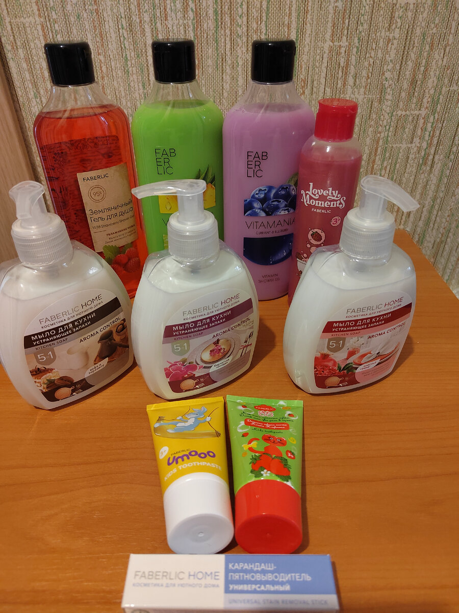 В основном, это мыло для кухни, устраняющее запахи, гели для душа, Саше зубную пасту, которую можно глотать, потому мы до сих пор не научились чистить зубы по-другому. И пятновыводитель) До этого я покупала спрей, сейчас - карандаш. Очень хорошие. Это ни в коем случае не реклама, просто реально помогают.