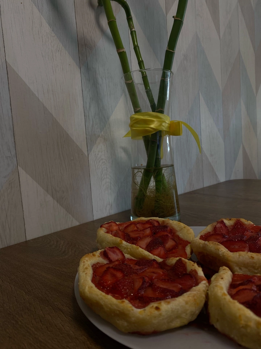 Немного посыпаю сахаром клубнику и промазываю края обычной водой.