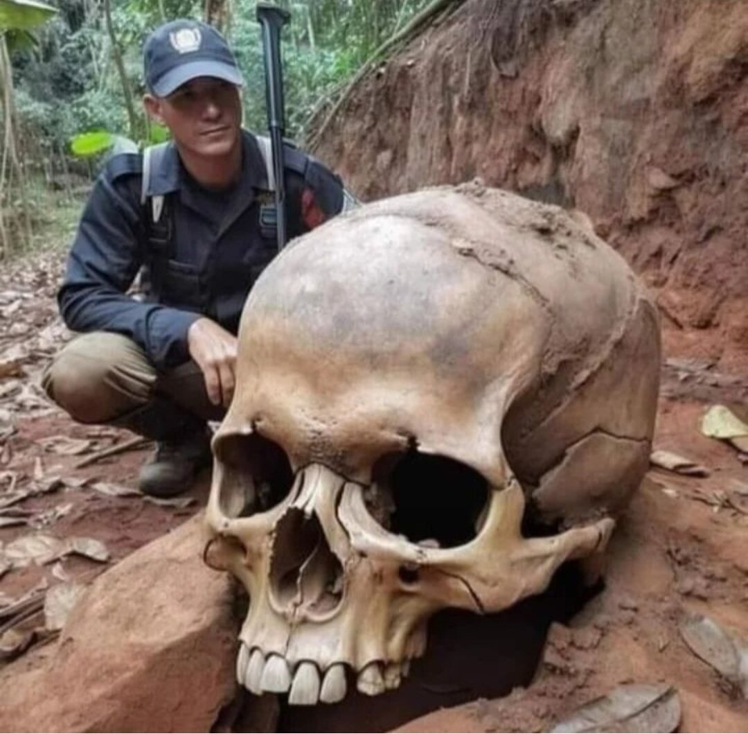 Почему-то вспомнилось стихотворение М.Лермонтова "Бородино" при виде этих скелетов и черепов древних существ, некогда обитавших на нашей планете. Можно сколько угодно говорить, что это все подделки, но данных артефактов находят все больше и больше. Давайте просто посмотрим, что человечество имеет на сегодняшний день. Черепа 10 метровых существ не такая уж редкость. Их находят сейчас, находили и раньше. Но всегда найдется тот, кто скажет, это сказки. А ведь находят не только черепа, но и полные скелеты. Неудобная правда, да? А ведь в Библии черным по белому написано, что на Земле паралельно с людьми обитали гиганты. Пример, Давид и Голиаф, рафаимы и так далее. Что мешает костям гигантов людей сохранится в земле, если кости неандертальцев к примеру сотни тысяч лет сохранялись? А на Шри Ланке вообще нашли странный череп гиганта. Похоже, что какой то примат был. Нет, это явно не подделки, просто официальной науке, которую создавали англосаксы там всякие просто по каким то причинам невыго