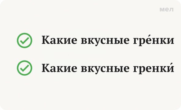 Суп с грЕнками или с гренкАми? ГрЕнки или гренкИ с хумусом? Вы удивитесь, но с ударением в этом слове все не так однозначно: оно зависит от формы единственного числа этого существительного. Правильно: грЕнки, гренкИ Правильная постановка ударения в этом слове во множественном числе зависит от того, какую форму единственного числа мы имеем в виду. Вариант в мужском роде («гренОк») подразумевает форму множественного числа с ударением на «и» — «гренкИ». А слово женского рода «грЕнка» во множественном числе образует форму с ударением на первый слог — «грЕнки». Ранее вариант «гренОк» (и, соответственно, «гренкИ») считался литературной нормой и давался как предпочтительный, но сейчас можно говорить о том, что он постепенно вытесняется формой в женском роде. Соответственно и ударение формы множественного числа — «грЕнки» — больше не считается просторечием и уж тем более ошибкой. Как норма оно уже он зафиксировано в большинстве современных словарей русского языка. Более того, некоторые издания