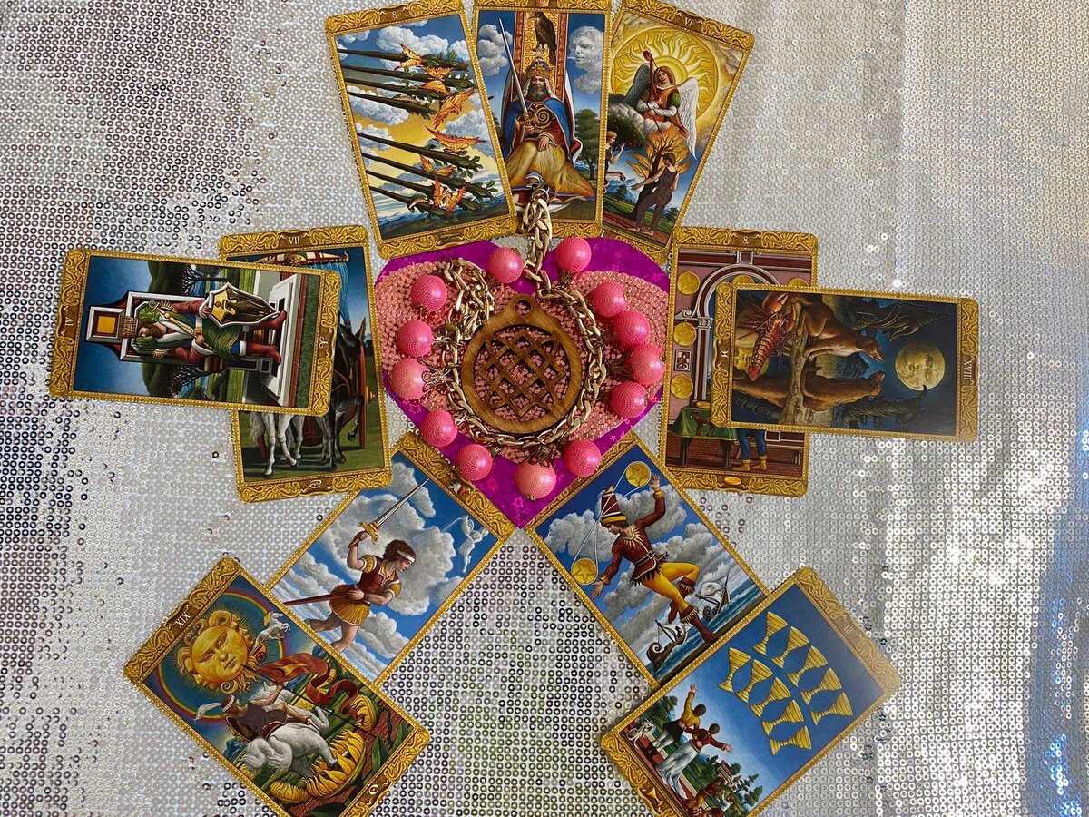 Карта "Влюбленные" указывает на страстные и сильные отношения, где оба партнера вовлечены и эмоционально открыты. В раскладе появляются карты, у