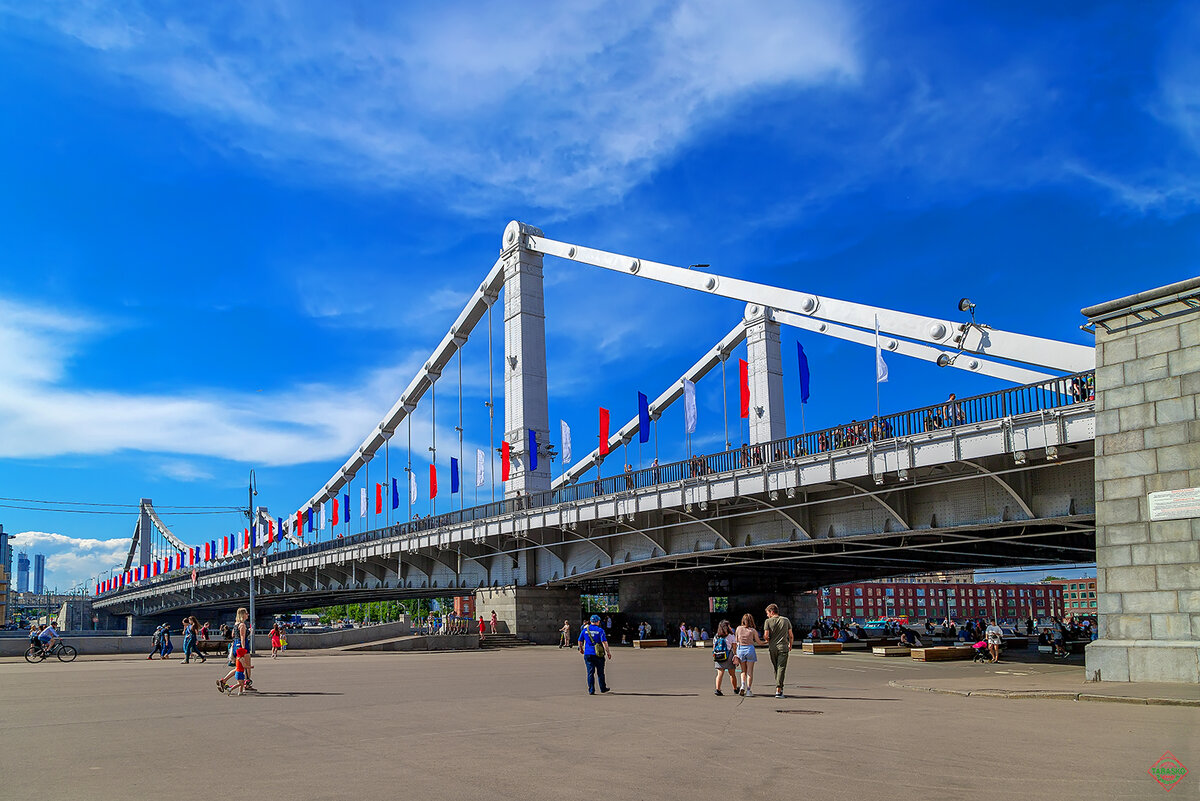 Генриха Сапгира Крымский мост — висячий мост через Москву-реку, расположен на трассе Садового кольца, соединяет Зубовский бульвар с улицей Крымский Вал. Построен в 1938 году в рамках Генерального плана реконструкции Москвы 1935 года по проекту архитектора А. Власова и инженера Б. Константинова. Существует несколько версий происхождения названия моста: по соединяемым им Крымской площади и улице Крымский Вал; по названию древнего Крымского брода; по находившемуся в XVI веке неподалёку от него двору крымского хана. Общая длина мостового перехода — 668 метров, из них на долю непосредственно моста приходится 262,5 метра. Ширина составляет 38,4 метра, из которых проезжая часть — 24,5 метра, балки жёсткости — 3,9 метра, два тротуара — по пять метров. Мост состоит из трёх пролётов: средняя часть перекры