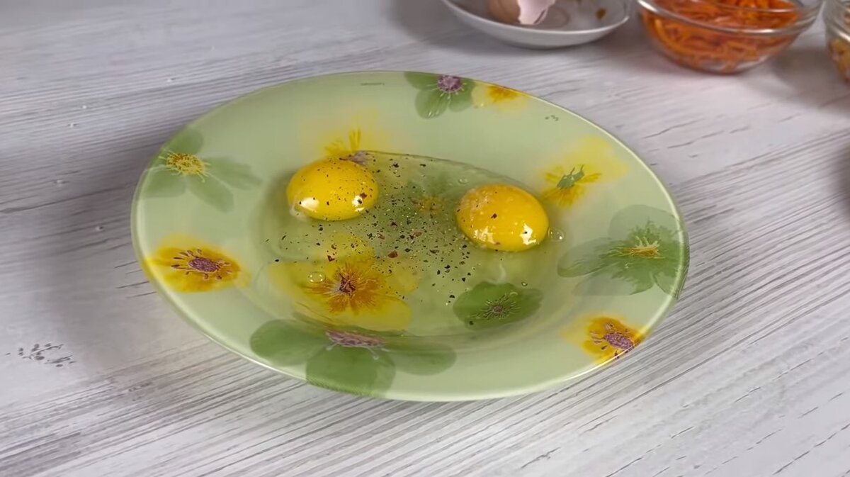 Когда в очередной раз хочется чего-то вкусненького, но времени или желания на готовку нет, на выручку приходят салаты. Обычно мы ищим рецепты таких салатов, ингредиенты для которых есть в нашем холодильнике. Сегодня хочу поделиться как раз таким! Этот салат готовится за считанные минуты, а съедается еще быстрее. Ведь сочетание продуктов в нем не приевшееся и очень вкусное! Подробный процесс приготовления можно посмотреть здесь: Давайте приготовим вместе: В миску разбиваем пару яиц. Солим, перчим по вкусу и хорошо взбиваем до однородности. В разогретой сковороде, смазанной растительным маслом, выпекаем два яичных блинчика. Затем сворачиваем их в трубочки и нарезаем тонкой соломкой. Отправляем в салатник. Ветчину нарезаем также тонкой соломкой. Если нет ветчины, можно использовать и вареную колбасу, и копченую, и даже отварное мясо. Вкус, конечно, будет отличаться, но все равно получится более, чем просто съедобно! Четвертинку луковицы (если она большая) режем тонко и добавляем в салат,