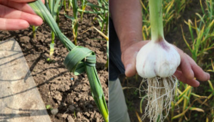 Выращивание чеснока в саду - дело непростое. Растение нуждается в регулярном уходе. Особенно важно подвязывать верхушки растения. Чеснок любит свет и хорошо растет в теплую и солнечную погоду. В сухую погоду его следует регулярно поливать, чтобы растение хорошо росло и созревало. Иногда летом может быть прохладно и дождливо. В жаркую погоду не у всех хватает времени на уход за чесноком. Поэтому растение плохо развивается и поздно созревает. Однако собирать урожай нужно вовремя, чтобы осенью или весной оставалось время на подготовку посадочного материала. В этом случае можно связать кончики чеснока узлом. Это улучшает поступление питательных веществ из листьев в чеснок и ускоряет созревание. Этот метод подходит для прохладной погоды летом и при небольшом количестве осадков.