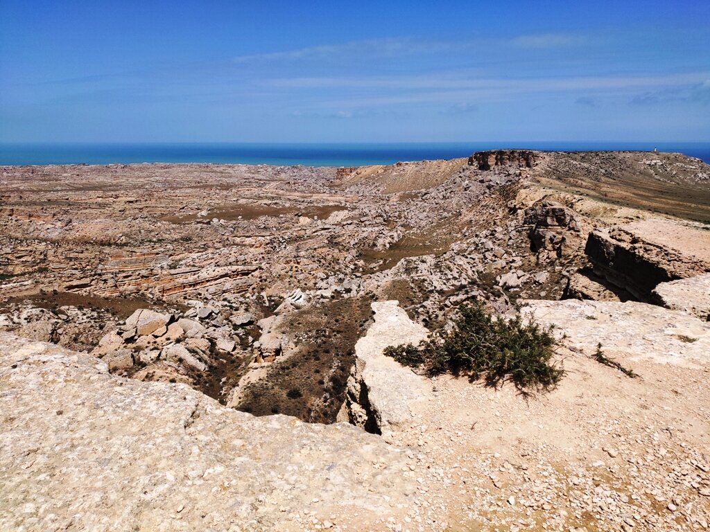 После маленького и уютного озера-каньона Саура мы поехали к Упавшей земле. Звучит страшновато. Да и в действительности место выглядит не слишком по-доброму – огромный провал на краю совершенно плоской степи. И если осторожно заглянуть вниз – к самому краю лучше не подходить - то увидишь впадину, всю покрытую громадными камнями. Провал огромен: диаметр около 4 км, а длина по верху около 12 км. Глубина достигает 90 м. Называется это место Жыгылган, что и переводится с казахского, как Упавшая земля. Иногда пишут Жигылган, но это вроде не совсем правильно. По поводу его происхождения ведутся споры: то ли это результат мощного землетрясения, то ли обвал из-за карстовых пустот. При взгляде на снимок сразу видно, что провал отличается от соседних "бухт". Раньше это были мысы, сильно выдающиеся в море. И, конечно, такое место не может остаться без легенд. По одной из них здесь остановился отдохнуть некий пророк, а воры украли у него лошадь. Земля наказала их: разверзлась и поглотила. Вероятно